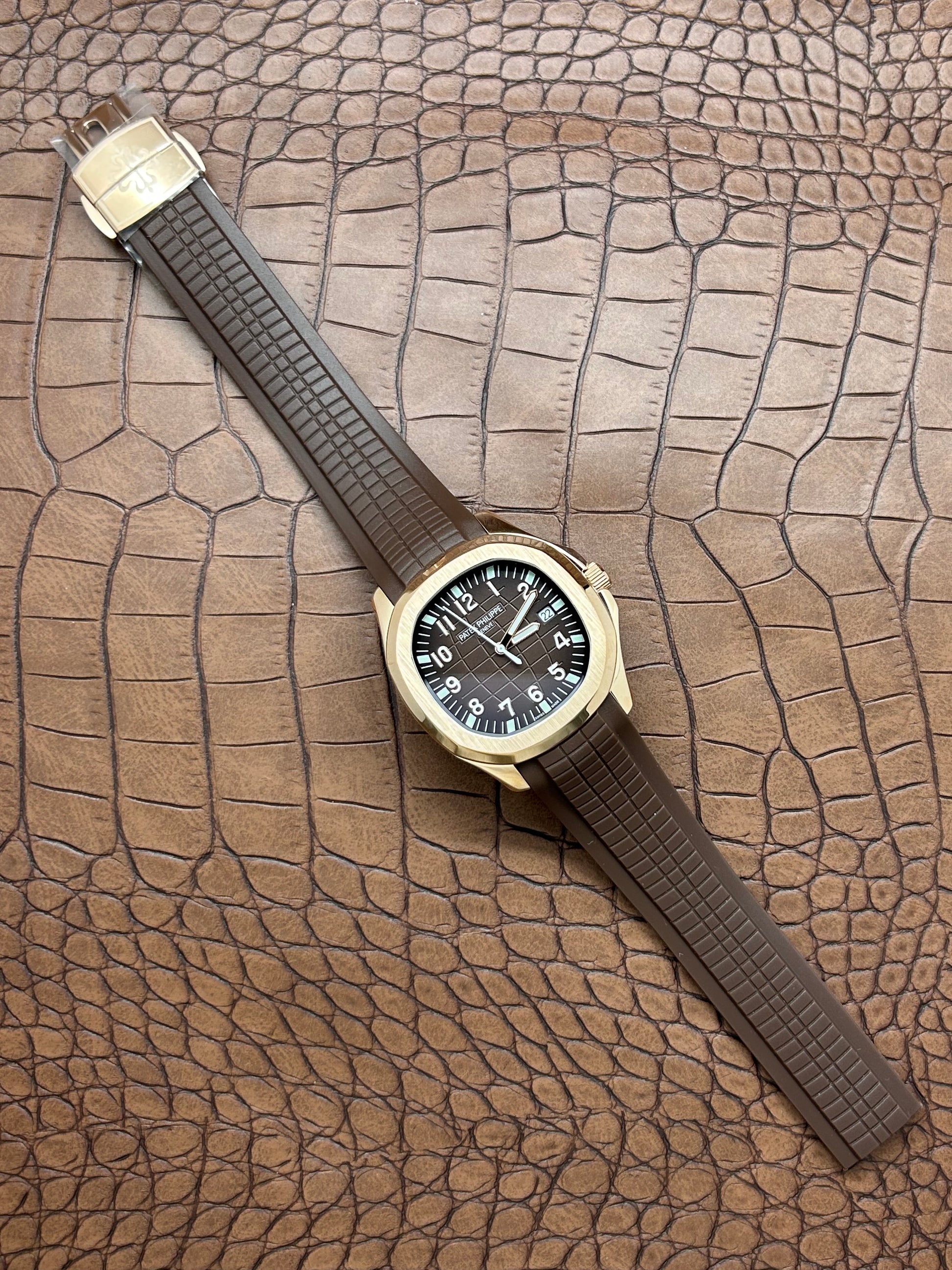 Il PP è un orologio raffinato in acciaio inossidabile con un movimento automatico visibile, che assicura precisione e durata. Il fondo marrone e gli indici luminescenti migliorano la leggibilità in condizioni di scarsa illuminazione. La resistenza all'acqua e il vetro antigraffio garantiscono una protezione efficace contro eventi quotidiani.Fatto totalmente in acciaio inossidabile