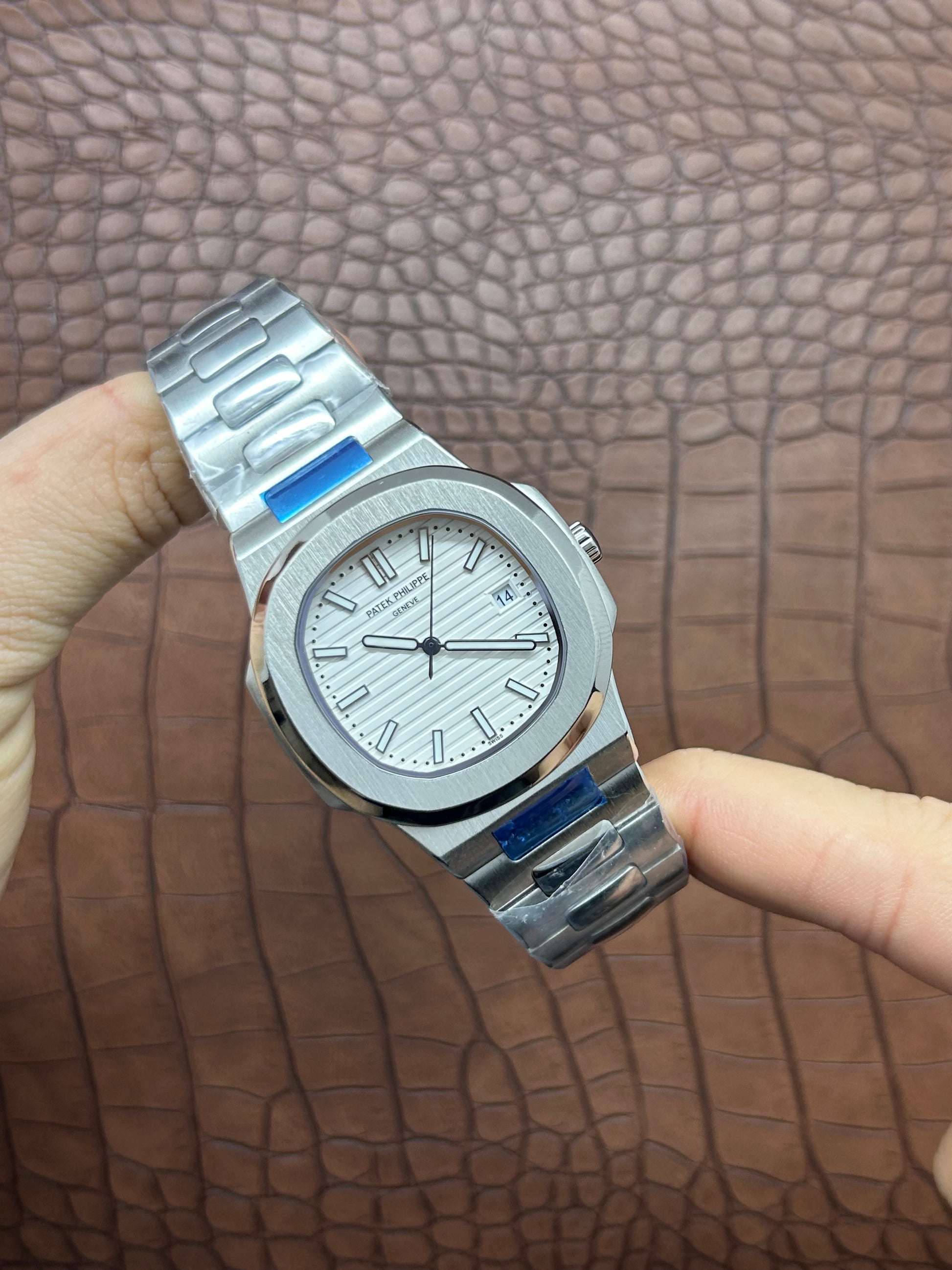 Il PP bianco è un orologio raffinato in acciaio inossidabile con un movimento automatico visibile, che assicura precisione e durata. Il fondo bianco e gli indici luminescenti migliorano la leggibilità in condizioni di scarsa illuminazione. La resistenza all'acqua e il vetro antigraffio garantiscono una protezione efficace contro eventi quotidiani.Fatto totalmente in acciaio inossidabile