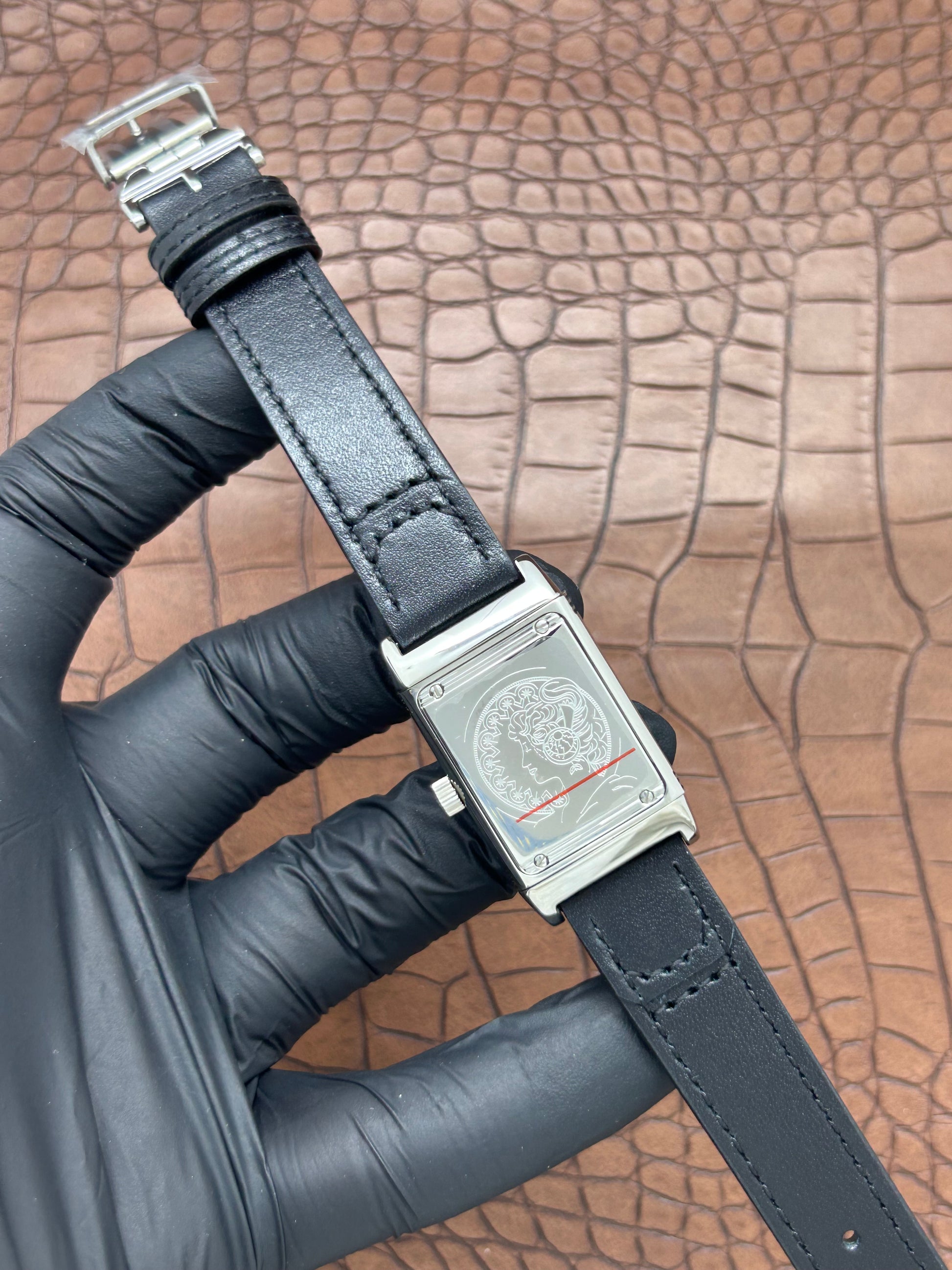 Il Reverso presenta una cassa girevole in acciaio inox 904L, noto per la sua resistenza alla corrosione e alla ruggine. Da un lato, si trova un orologio preciso, mentre dall'altro lato è presente una serigrafia elegante. Il bracciale in pelle offre comfort e stile, rendendo questo prodotto un'opzione versatile e sofisticata per ogni occasione.